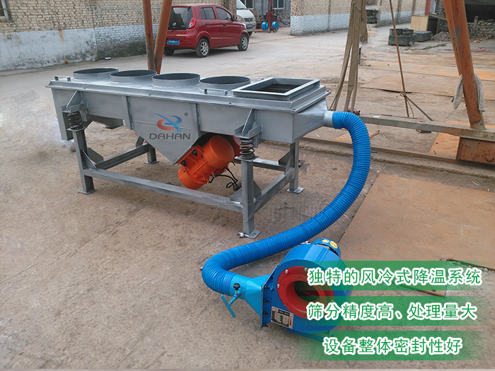 風(fēng)冷式直線(xiàn)振動(dòng)篩以DZSF系列直線(xiàn)振動(dòng)篩為基礎(chǔ),增加了風(fēng)機(jī)降溫冷卻系統(tǒng),可將高溫物料降溫后繼續(xù)篩分,有效的降低高溫物料的篩分難度,篩分效率、處理量也得到了大幅度的提高,節(jié)約生產(chǎn)成本。