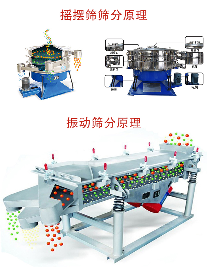 搖擺篩由于采用了仿人工篩分和加設(shè)了清網(wǎng)裝置,所以更加適合500目內(nèi)不規(guī)則或潮濕的物料,克服了普通振動(dòng)篩的堵網(wǎng)風(fēng)險(xiǎn),而振動(dòng)篩屬于非平衡破壞暴力運(yùn)動(dòng),利用了振動(dòng)原理來篩分物料,所以有時(shí)還會(huì)破壞物料,所以對(duì)于一些顆粒狀結(jié)晶焦脆物料,建議使用搖擺篩,其篩分精度可達(dá)95% 以上。