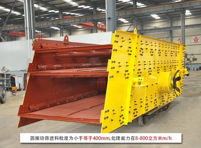 圓振動(dòng)篩進(jìn)料粒度為小于等于400mm,處理能力在8-800立方米m/h