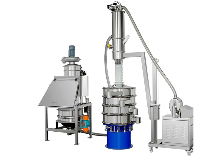 無塵投料站適用于制藥、化工、食品、電池材料等行業(yè)大、中、小袋物料的拆包、投放、篩分和卸料。拆包時由于集塵風(fēng)機的作用,可以避免物料粉塵到處飛揚。當(dāng)物料解袋并倒入下一道工序時,只需人工直接拆包投入到該系統(tǒng),物料通過振動篩,可將大塊物料和異物攔截,從而保證符合要求的顆粒排出。